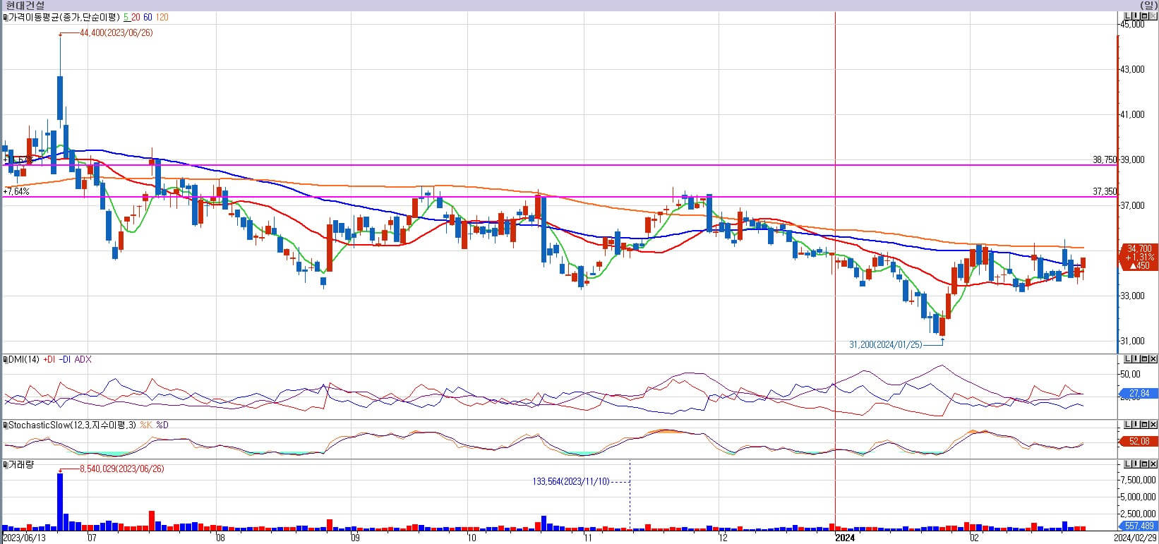 현대건설이 불가리아 원전 2기 공사의 우선협상대상자로 선정되었다는 소식이 있었습니다. 이는 UAE 원전 이후 15년 만의 최대 규모 해외 원전 수주입니다. 현대건설은 시공 부문을 담당하며, 총 18조 원 중 8~9조 정도를 가져올 것으로 예상합니다. 원전 수주 뉴스에도 주가가 전혀 가지를 못하고 있습니다. 120일 이평선 저항조차 뚫지 못하는 모습입니다. 현대건설이 가진 다른 악재가 종목에 영향을 미치고 있다는 뜻입니다. 호재가 있지만 반영이 안 되는 것은 분명한 이유가 있을 것입니다. 그래서 매수가 불가능합니다. 다음 주도 관망하도록 하겠습니다.