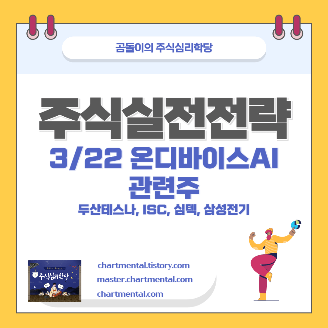 오늘은 3월 22일 기준 온디바이스 AI 4 종목에 대해 주가 전망과 차트분석을 통해 전략을 설정해 보도록 하겠습니다. 지난 한 주간 어떤 변화가 있었는지 자세히 관찰해 보도록 하겠습니다.
